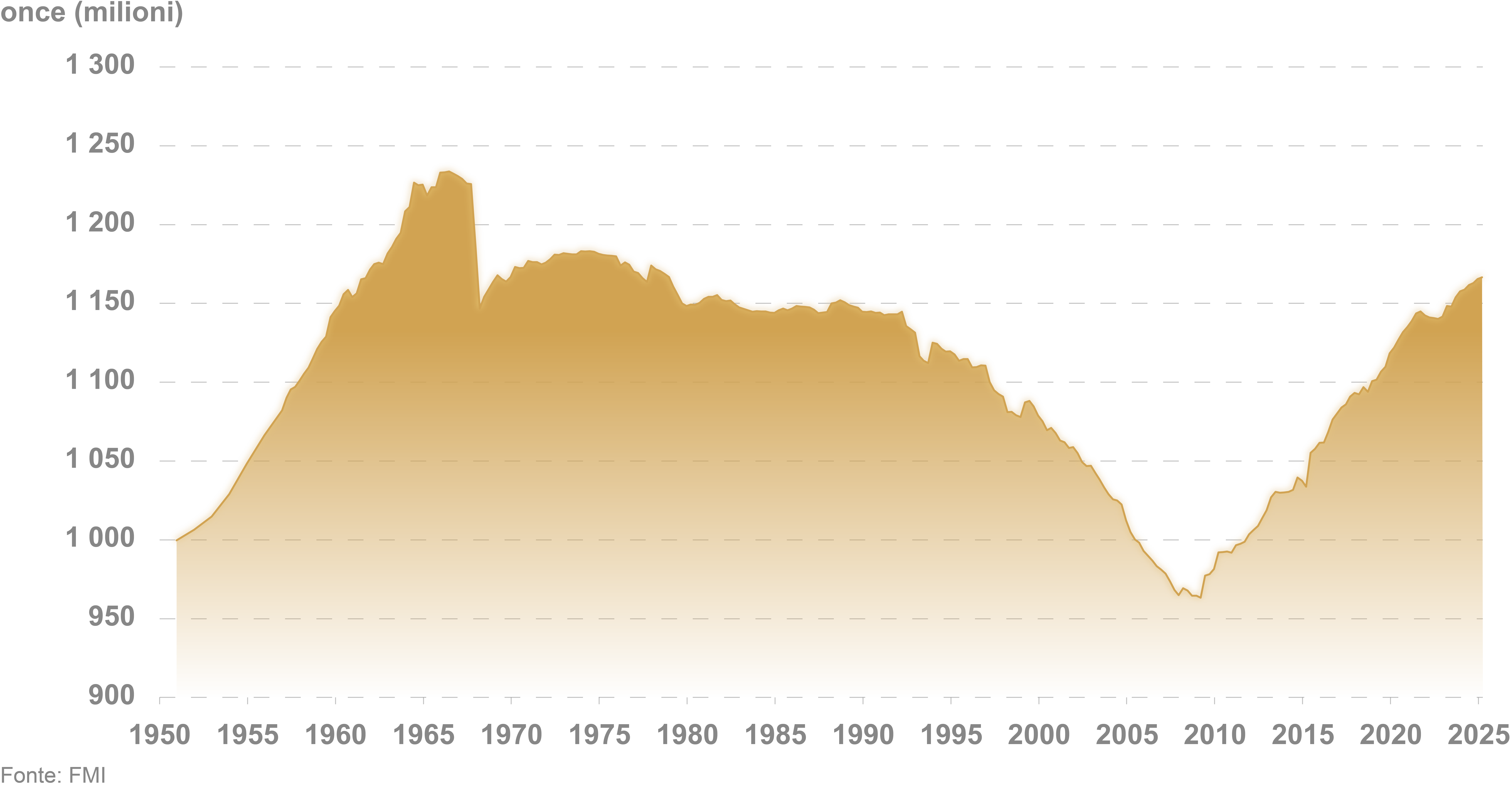 - 36 000 tonnellate di oro detenute nelle riserve ufficiali, il livello più alto dalla fine del sistema di Bretton Woods