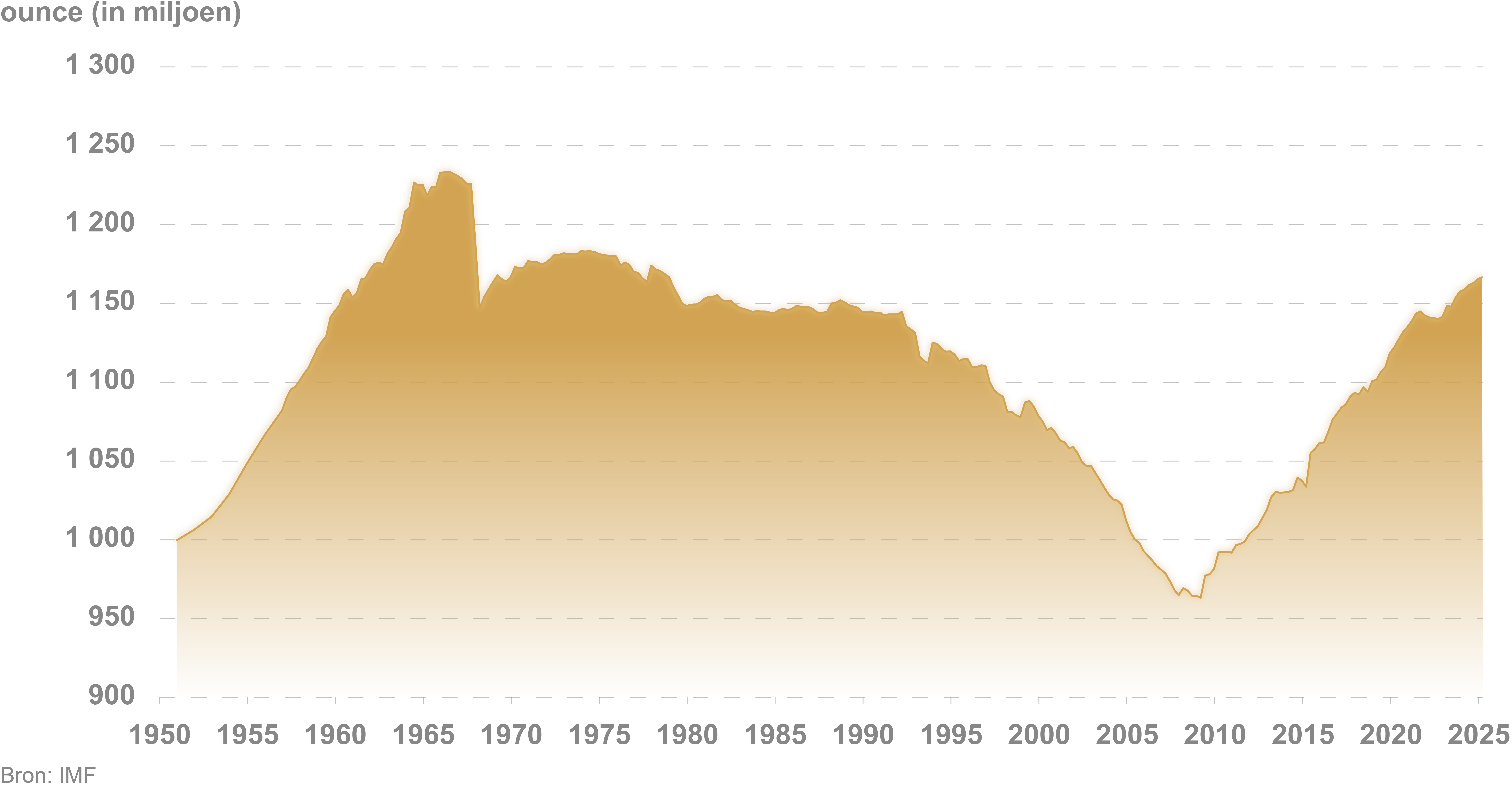 - Er wordt 36 000 ton goud aangehouden in officiële reserves, het hoogste niveau sinds het einde van het systeem van Bretton Woods
