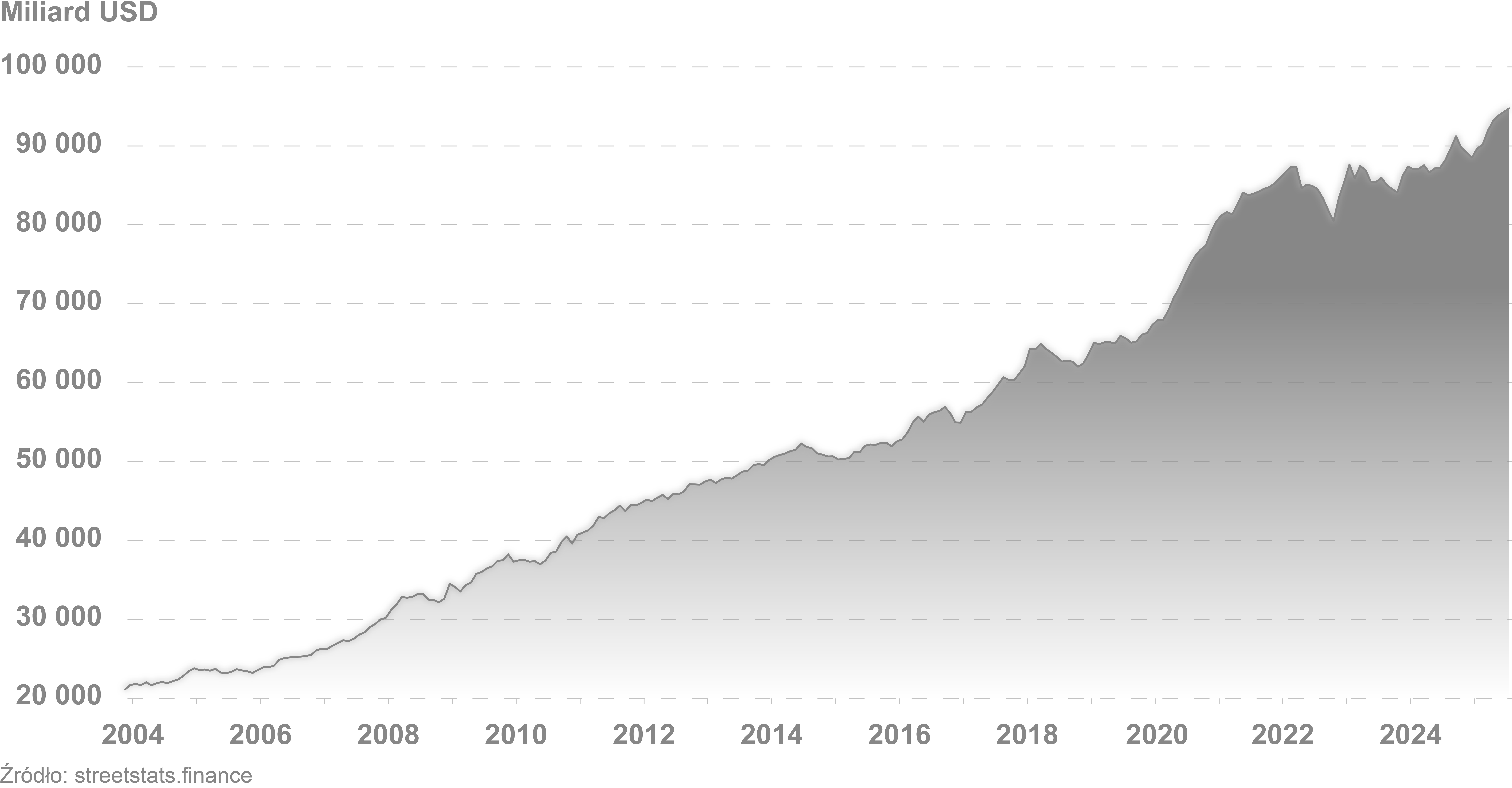 - Całkowite oficjalne rezerwy złota przekroczyły poziom 36 000 ton – najwięcej od czasów systemu z Bretton Woods.